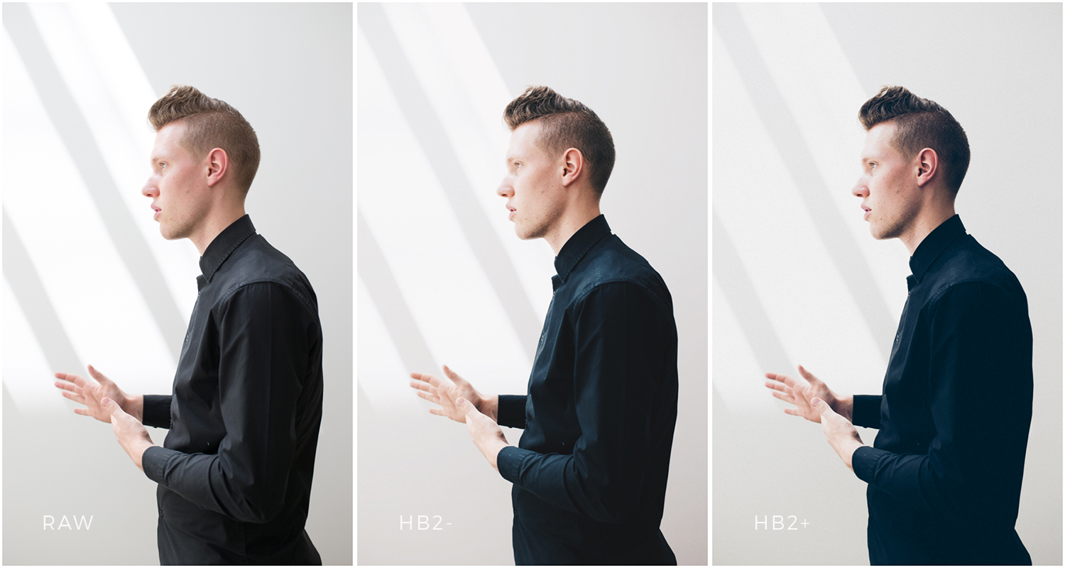 One click edit when colour balance and exposure is properly adjusted RAW (left), HB1 preset applied (right)
