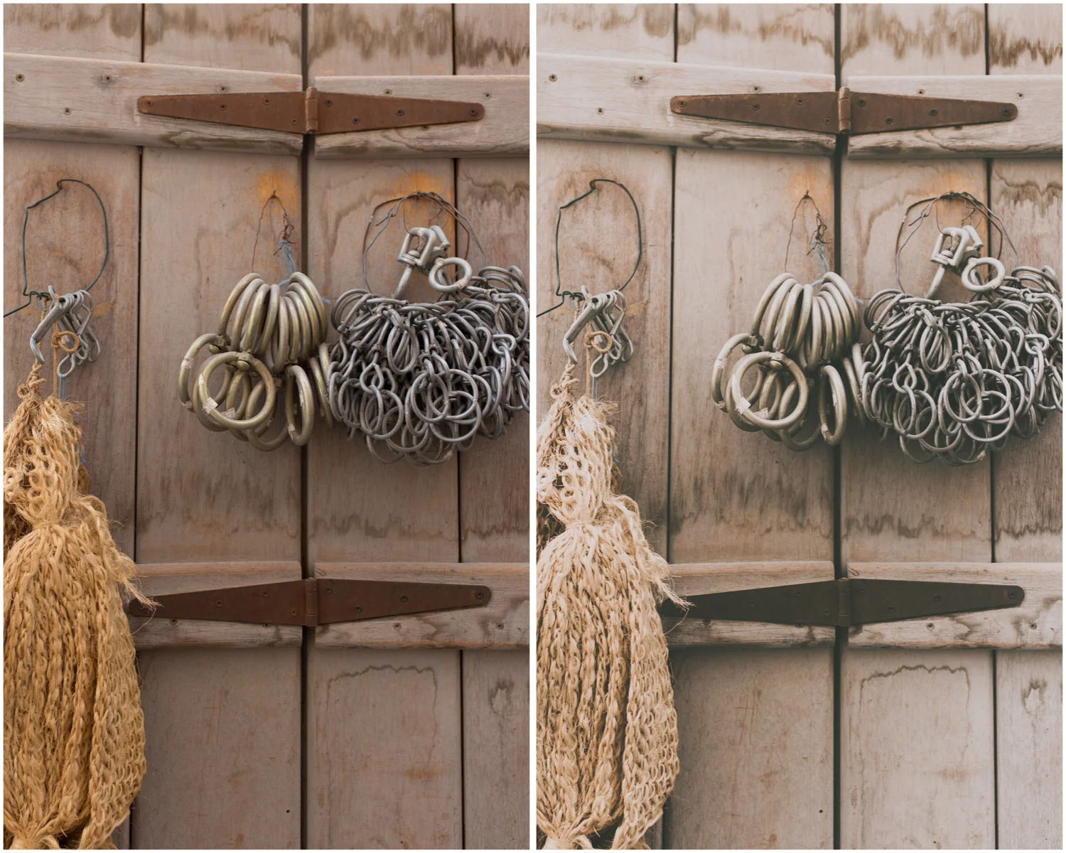There is a very very subtle warm caramel colour cast, with the highlights neutralised with cool toning in the split toning panel. This is important in keeping the overall look clean, and modern. I wanted an analogue film look, but not the old sepia photograph type of look!